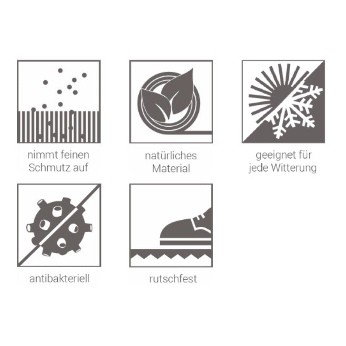 Gefertigt aus hochwertigem, natürlichem Kokosmaterial entfernt die Matte zuverlässig feinen Schmutz von den Schuhsohlen. Kokosfasern sind von Natur aus widerstandsfähig, wetterbeständig und weitgehend resistent gegen Viren und Bakterien – hygienisch und langlebig.